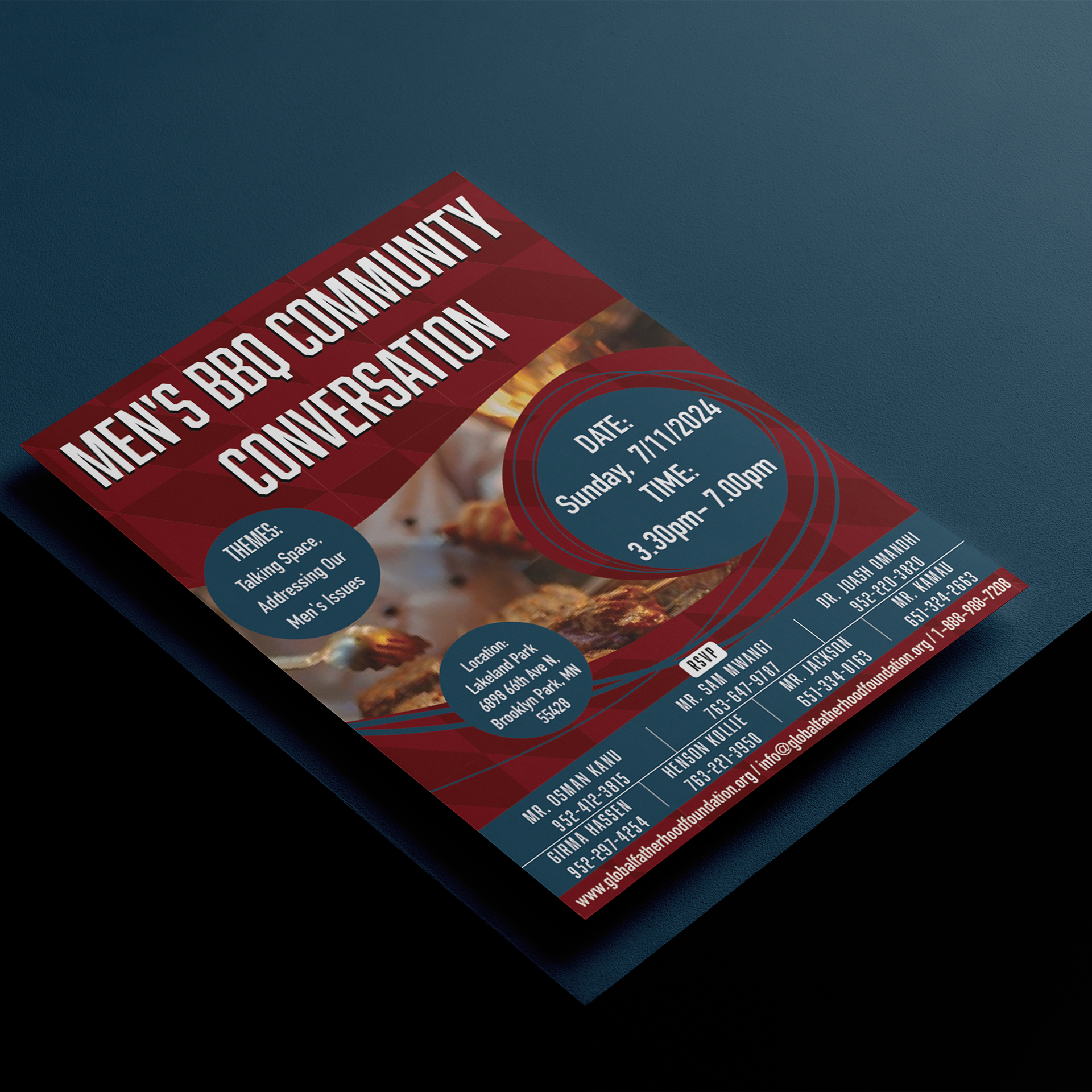This project was a simple advertisement for a community event to foster conversation and community. This flyer we have a fun flowing design with strong dark colors packed full of information.